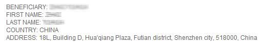 The beneficiary details for www.b2c-shopping.co.uk are:
